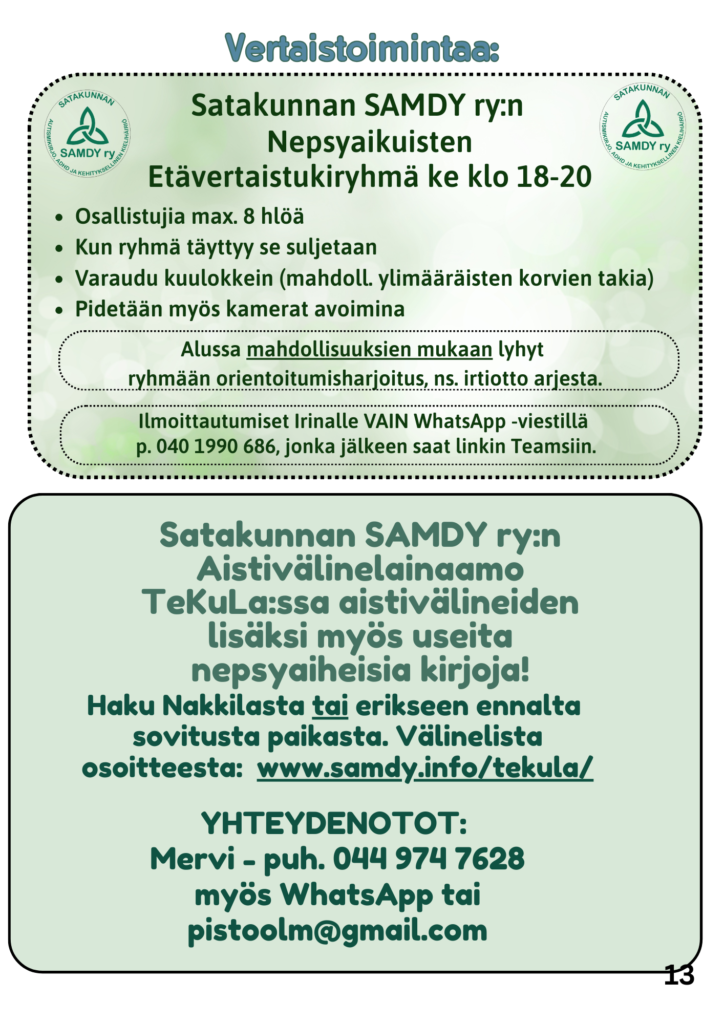 • Vertaisryhmät ja kerhot