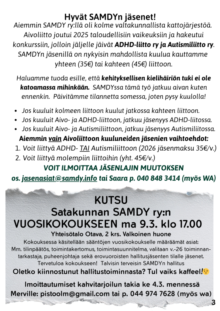 2026 – 1 Jäsentiedote