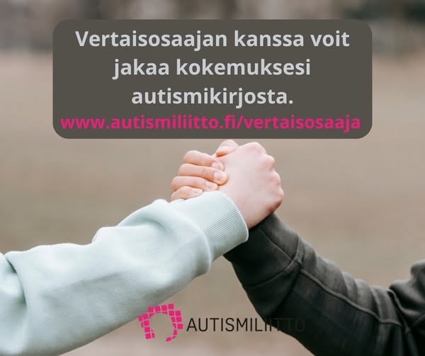 Tule mukaan jakamaan kokemuksia ja vaihtamaan ajatuksia muiden osallistujien kanssa. Osallistua voit Autismiliiton vertaishetkeen netissä, jonka kohderyhmään koet itse kuuluvasi. Virallista diagnoosia et tarvitse, oma kokemuksesi on tärkein. Keskustelut perustuvat vertaisuuteen ja ovat avoimia kaikille kohderyhmään kuuluville.